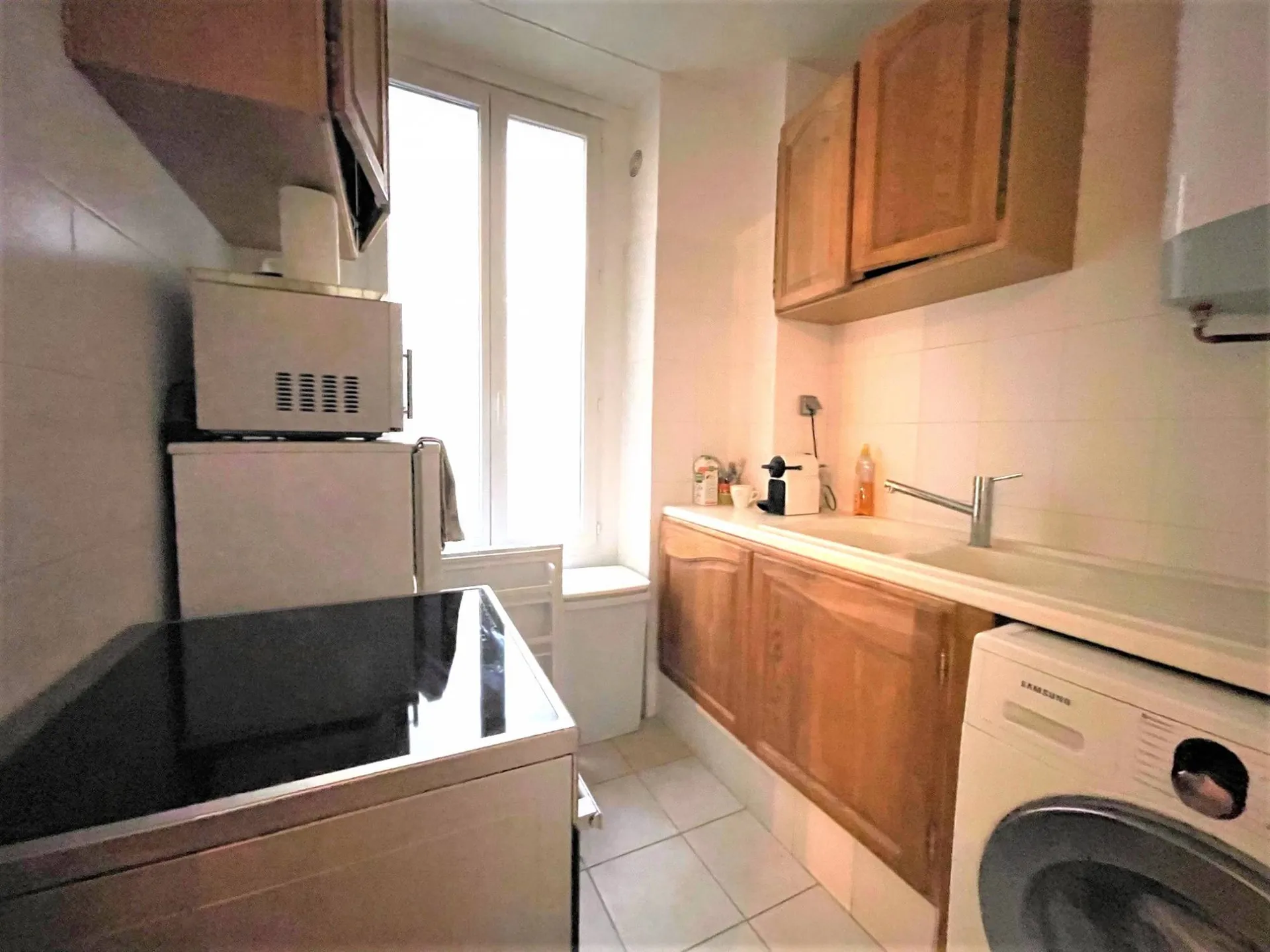Cet appartement se compose d'une entrée, d'un séjour de 22 m² avec 3 fenêtres et balcons, une chambre de 11 m², une cuisine indépendante aménagée, une salle d'eau et un wc séparé.