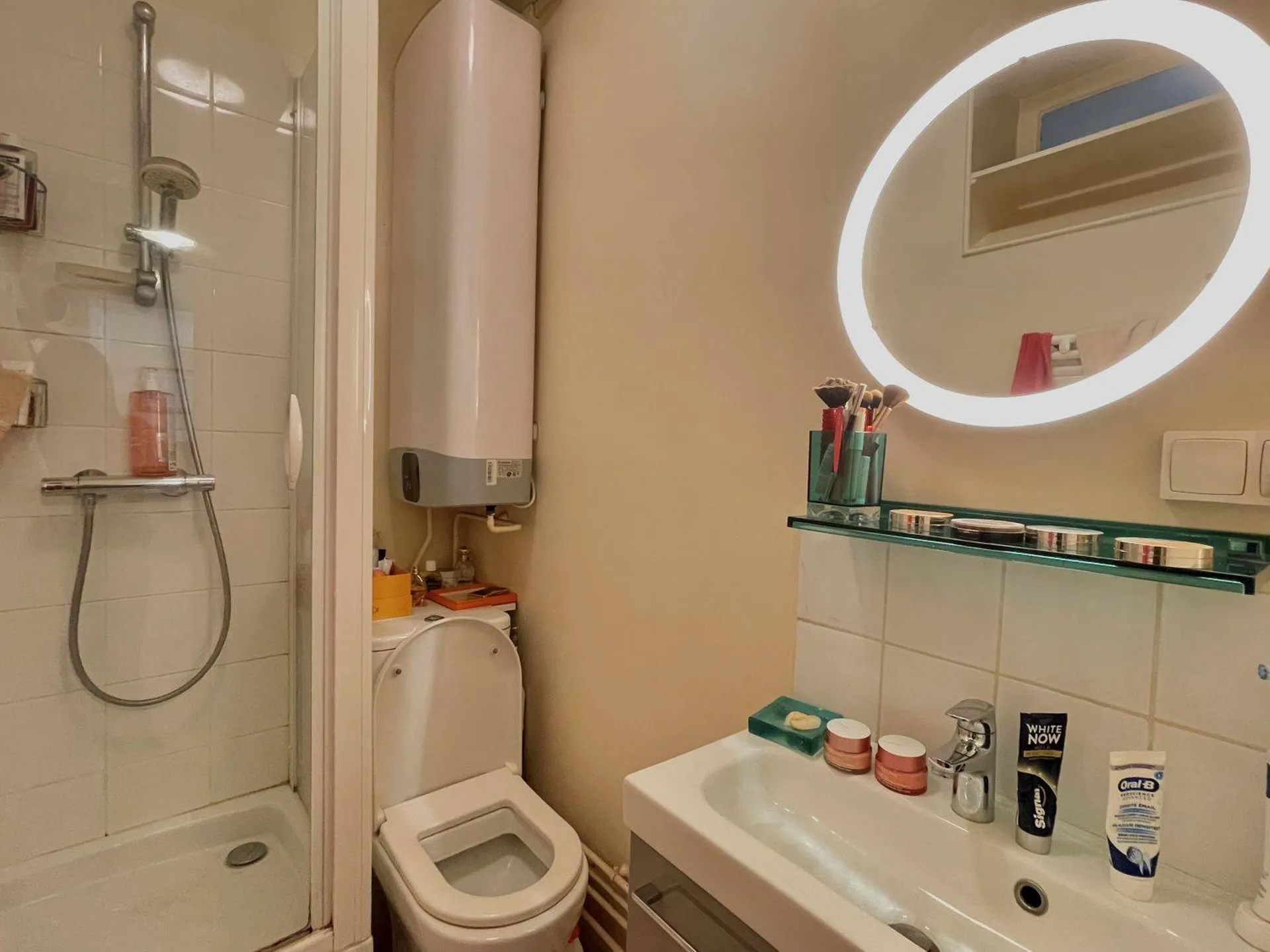 Cet appartement en parfait état général comprend une entrée, un bel espace de vie de 24.50m² avec double séjour et cuisine ouverte aménagée, une chambre confortable ainsi qu'une salle d'eau avec WC.