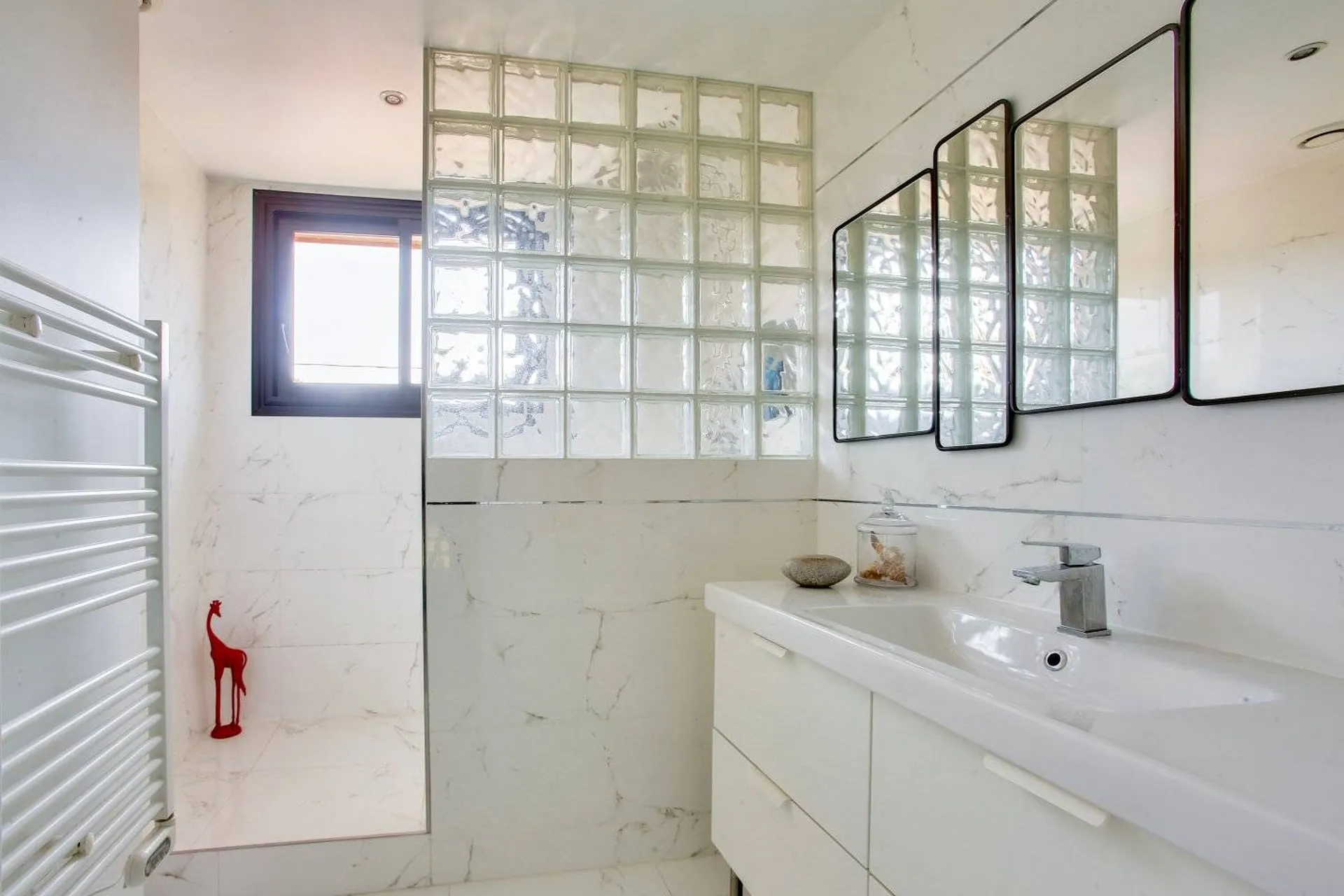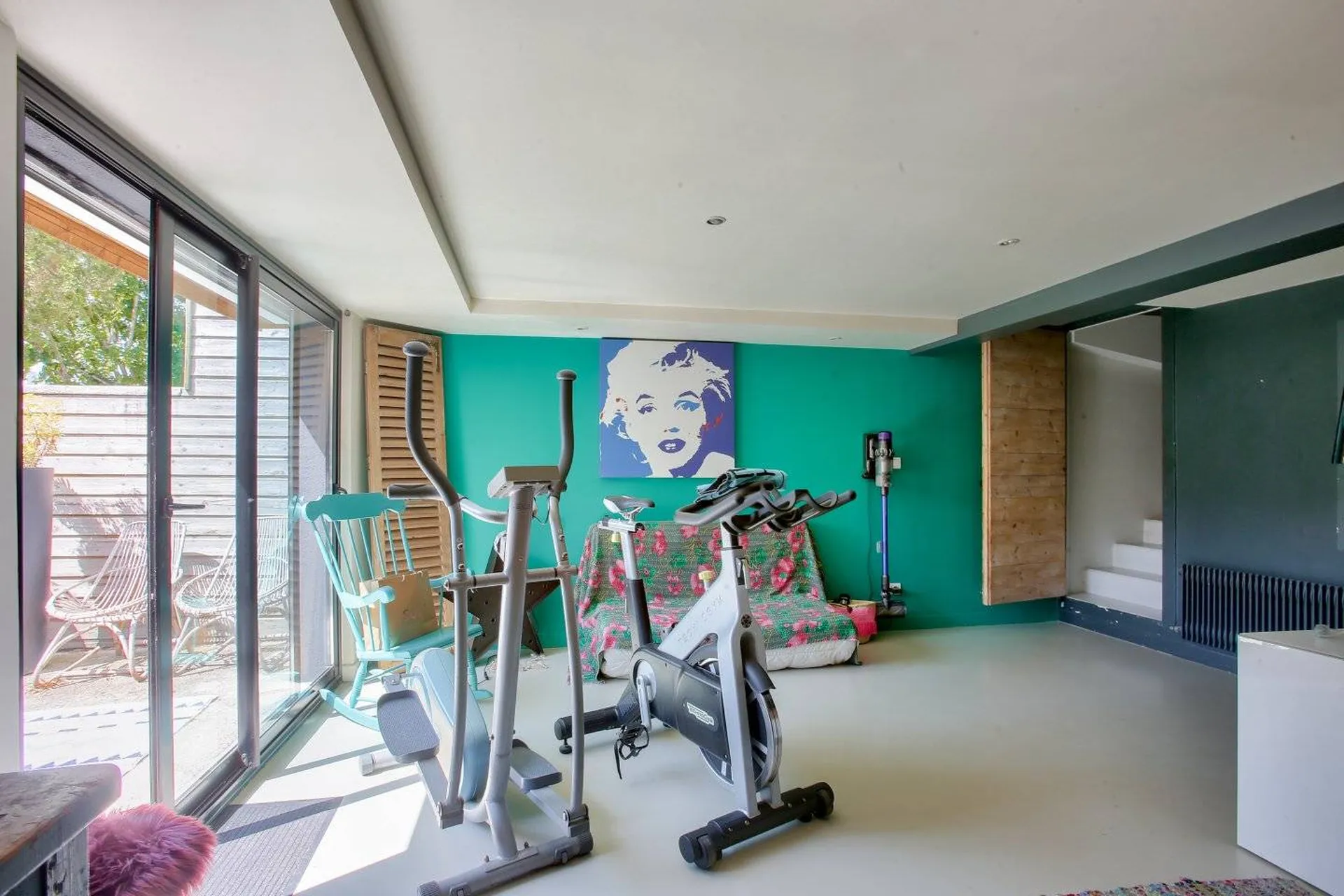 Au rez-de-jardin nous pouvons retrouver une chambre ouverte sur cour suivie par une salle d’eau, un w.c séparer, dressing et local de chaufferie, avec une superficie de 58,48m2.
