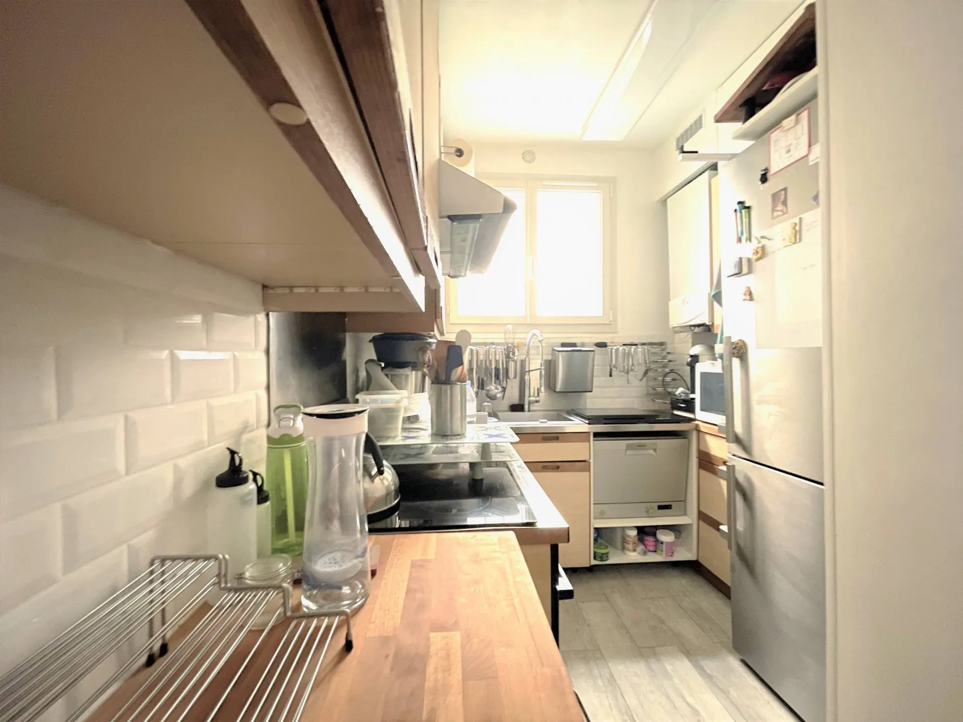 Il se compose d'une entrée avec couloir, d'un double séjour lumineux, d'une chambre sur cour avec rangements et système de lit escamotable, d'une cuisine aménagée et séparée, d'une salle d'eau et d'un wc séparé.