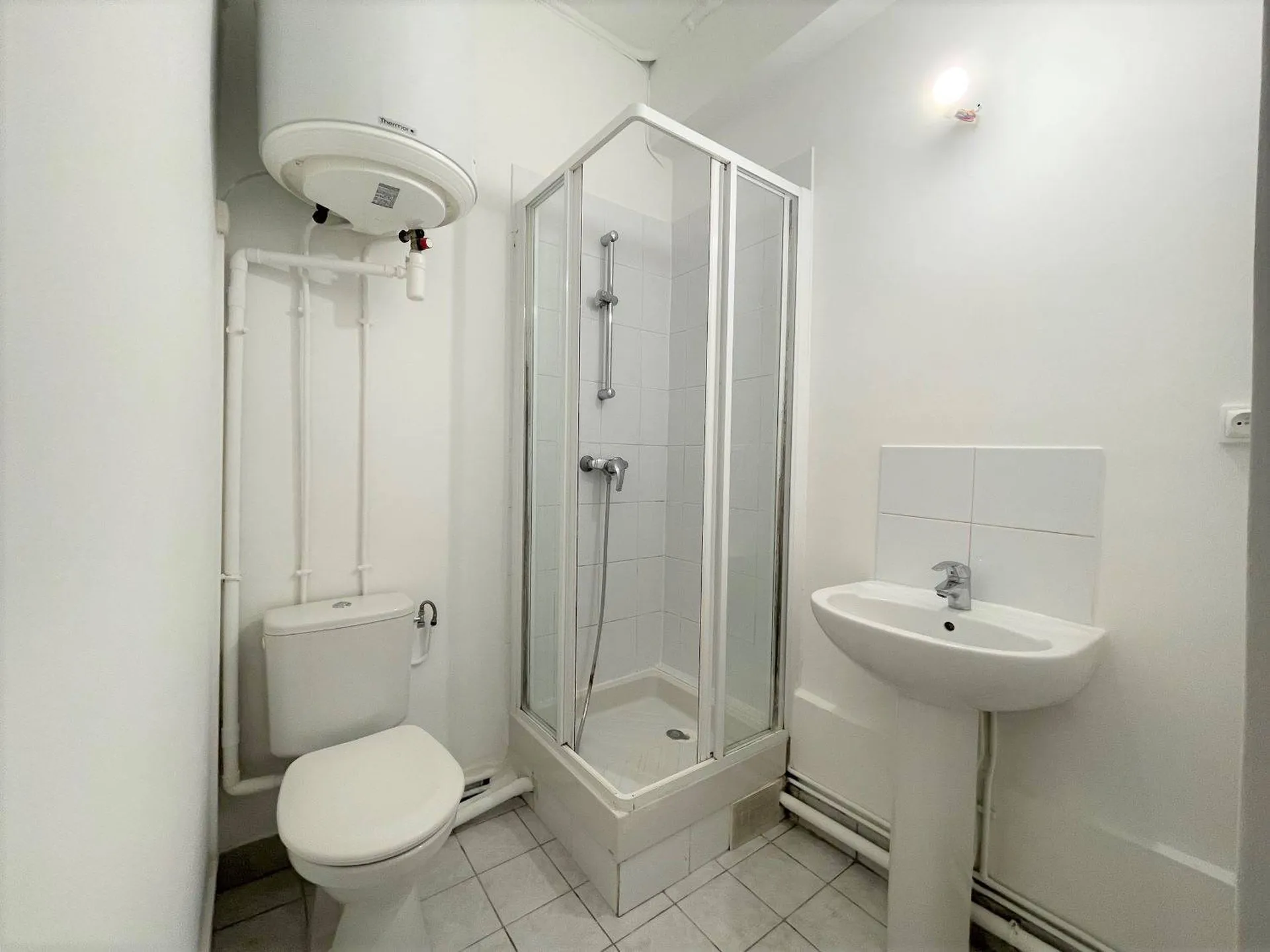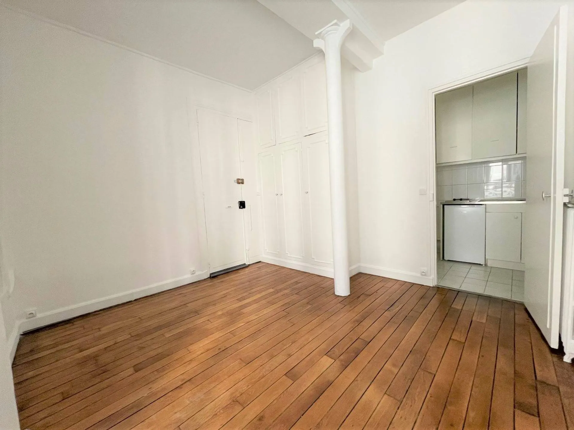 Ce studio rénové est composé d'une pièce avec placard et dressing, une cuisine ouverte équipée et d'une salle d'eau avec WC.