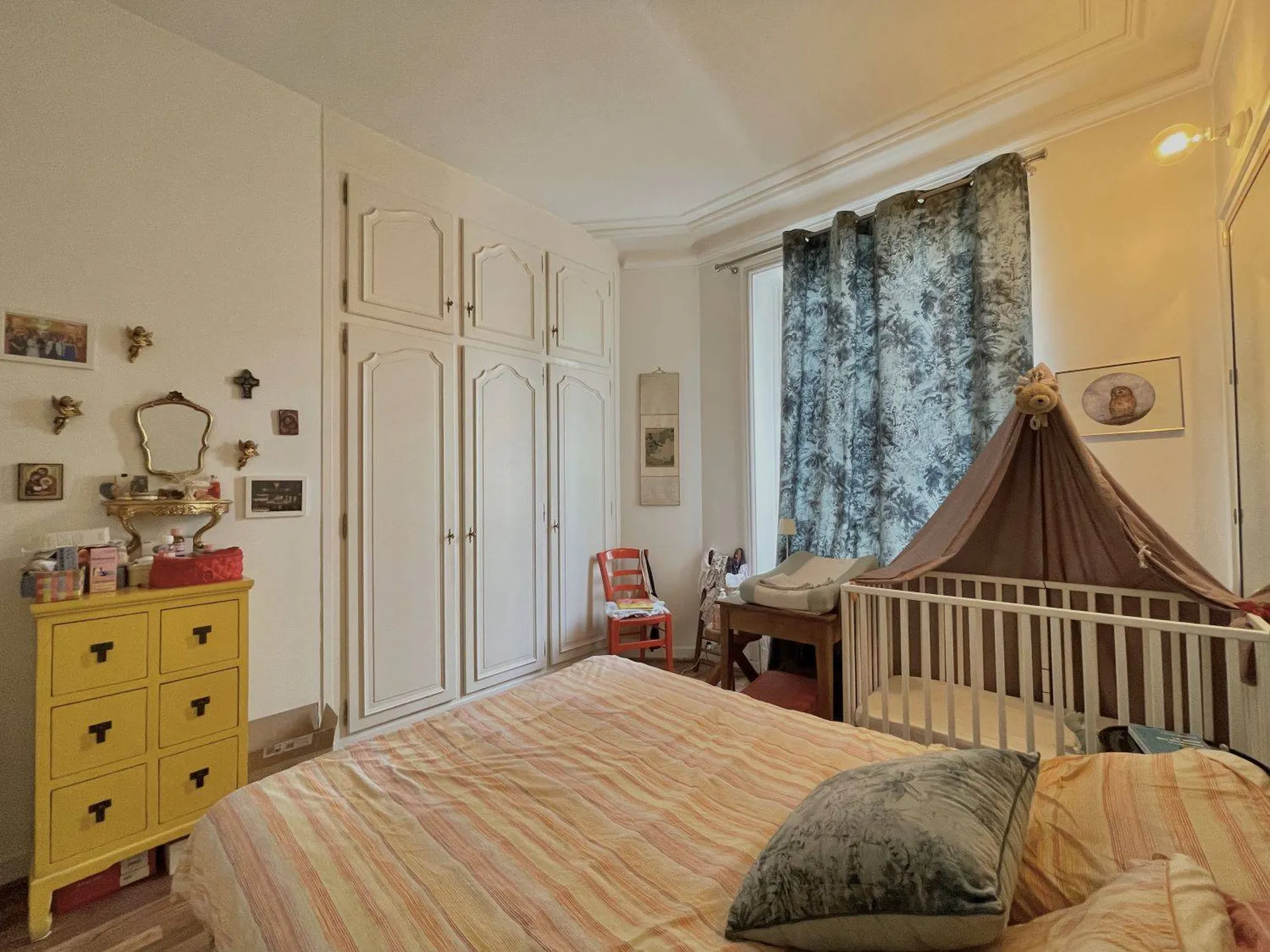 Situé au 2ème étage d’un bâtiment donnant sur une jolie cour au calme, cet appartement présente une chambre avec nombreux rangements, un beau séjour de 27m2 avec balcon, qui peut être transformé en une deuxième chambre, une salle de douche spacieuse, une cuisine aménagée et équipée.