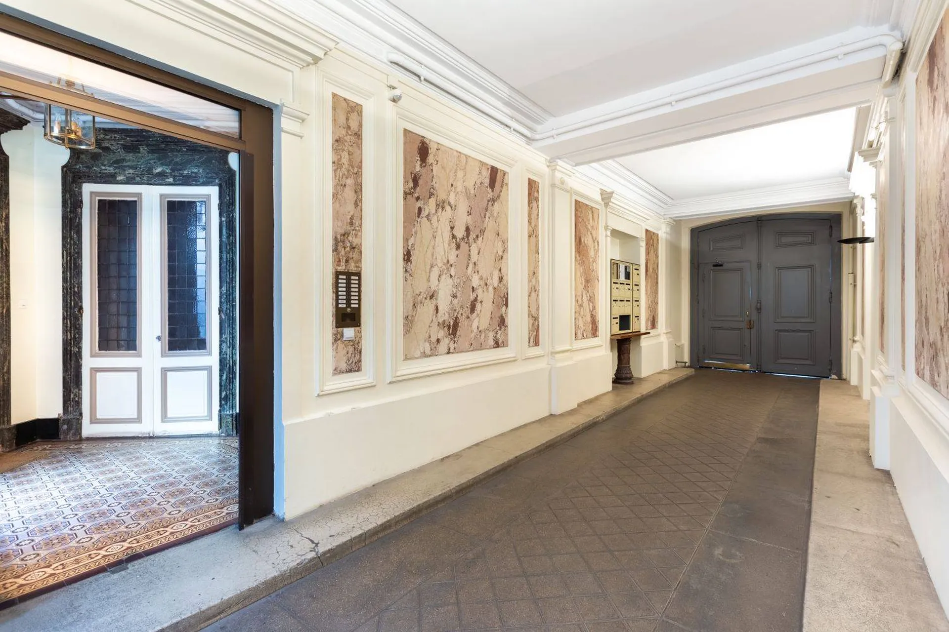 Ce bien a conservé tout le charme de l'ancien avec 3.10 mètres de hauteur sous plafond, son parquet en point de Hongrie, ses moulures et cheminées.